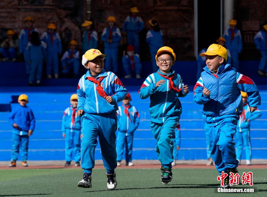 3月10日,拉萨市第一小学学生正在上体育课。中新社记者 李林 摄