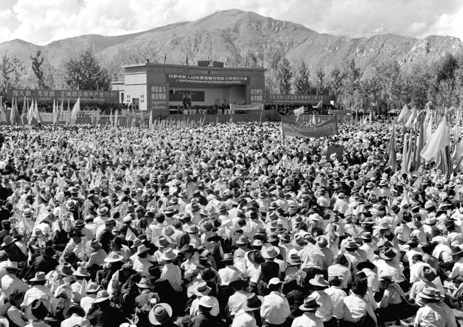 1965年9月9日,西藏自治区首府拉萨市3万多人集会,热烈庆祝西藏自治区正式成立。(新华社记者 马竞秋摄)