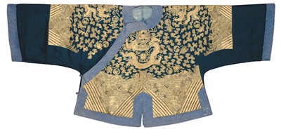 清代石青色金丝织锦龙褂。民族文化宫供图