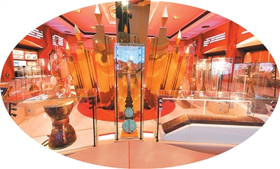 唐代文成公主带到吐蕃的琴(右)与长鼓(左)。张 昊摄