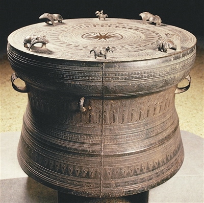 汉代冷水冲型十二芒铜鼓。民族文化宫供图