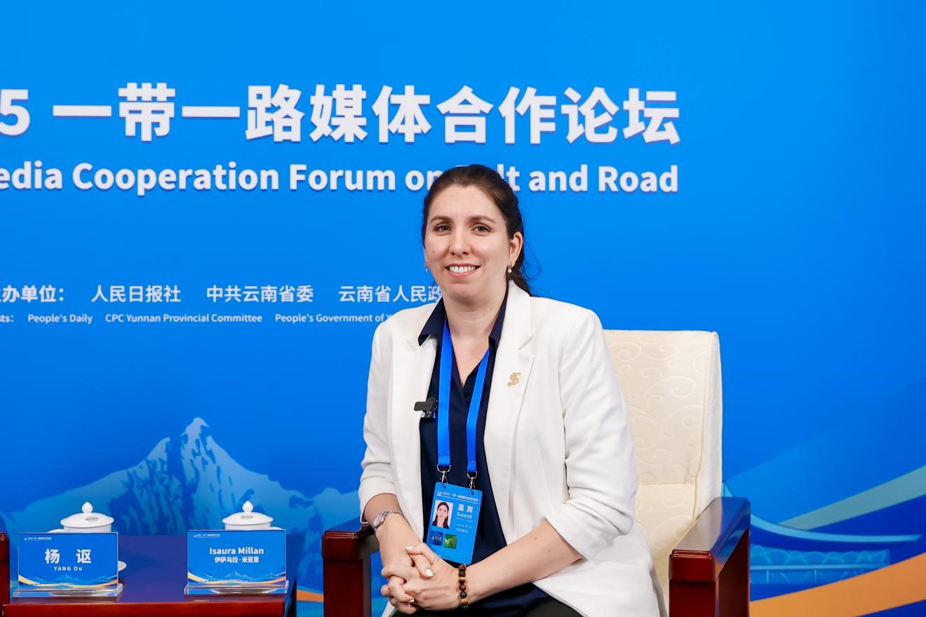 图为古巴拉美通讯社驻京记者伊萨乌拉·米亚恩接受专访