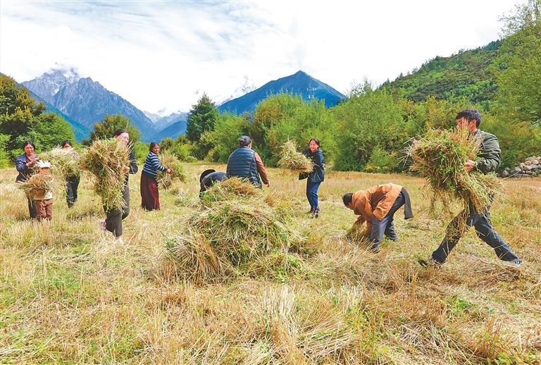 林芝市工布江达县错高乡结巴村村民秋收场景。记者白玛泽旺 次仁平措摄