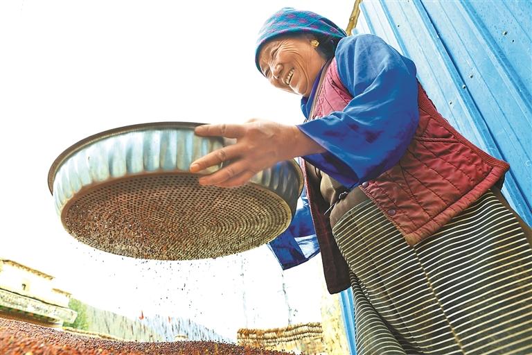 拉萨市墨竹工卡县唐加乡莫冲村村民正在筛菜籽。记者 旦增兰泽 通讯员 洛克摄