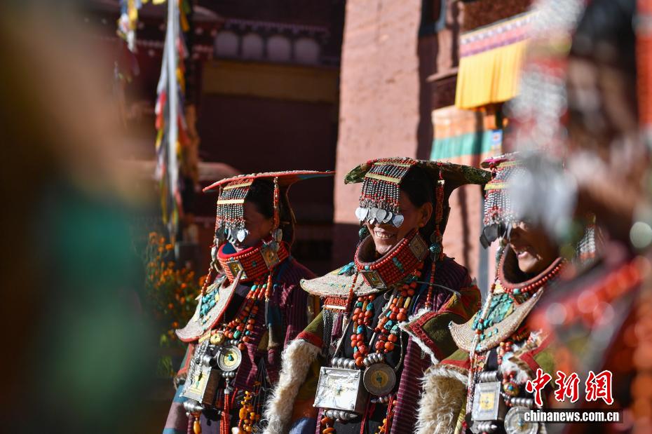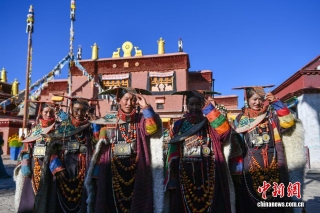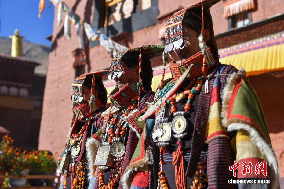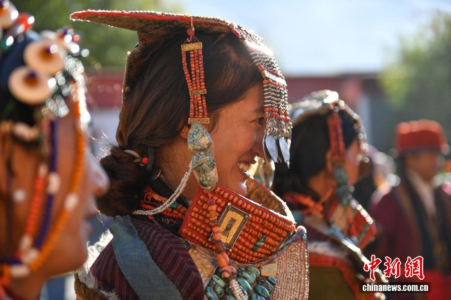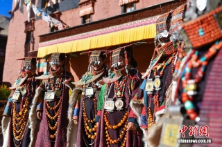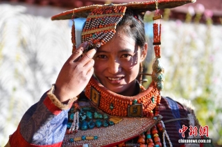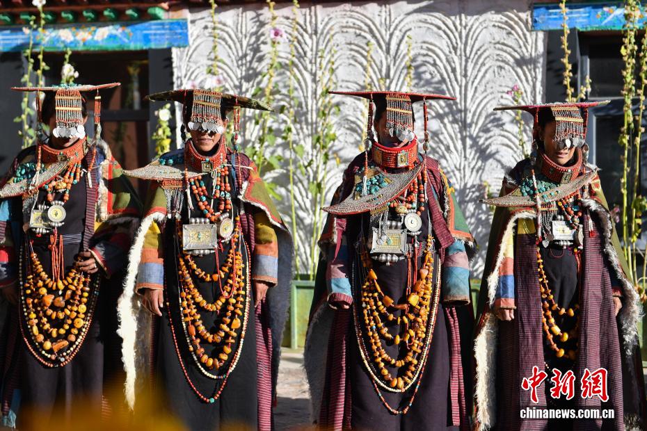图为西藏阿里地区普兰县科迦村,村民在展示普兰服饰。贡确 摄