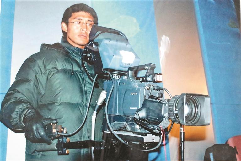 那是一张定格于2005年的旧照,于拉巴多吉而言,它承载着无尽的回忆。那是参加工作的第二年,他在阿里地区藏历新年晚会现场,正用镜头捕捉着精彩瞬间。“当时的演播厅小得只能容纳60人左右,所用设备都是笨重的磁带机,不仅机子格外沉重,且因采用模拟信号,画质极差,素材也难以妥善保存。”拉巴多吉轻抚着手里的老照片娓娓道来。