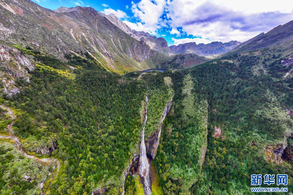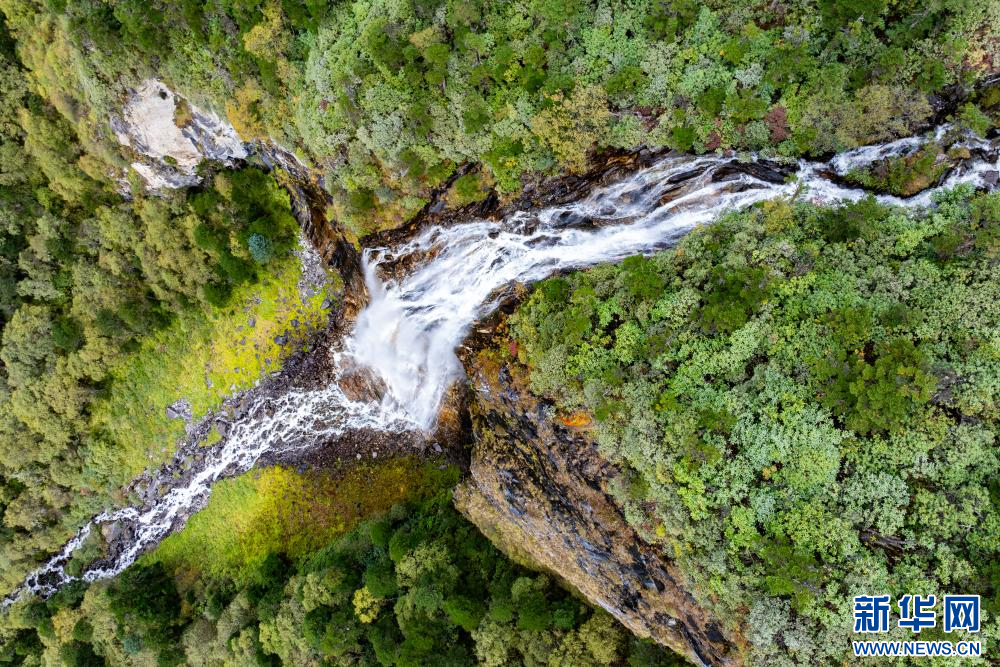 10月10日拍摄的拉郊瀑布(无人机照片)。新华网 旦增努布 摄