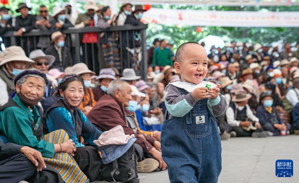 6月11日,西藏拉萨当地群众在观看藏戏演出。新华社记者 丁增尼达 摄