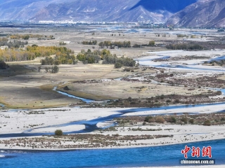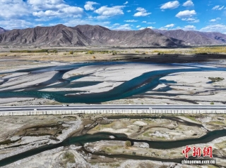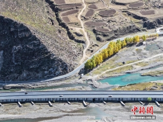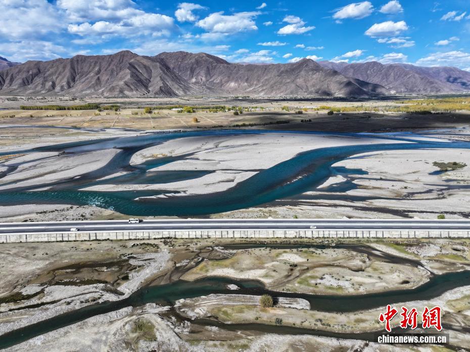 10月15日,西藏自治区拉萨市墨竹工卡县境内的拉萨河两岸进入最美秋季,澄澈河水映衬着蓝天白云,沿线村庄与拉萨至林芝高等级公路相映成趣,美景如画。