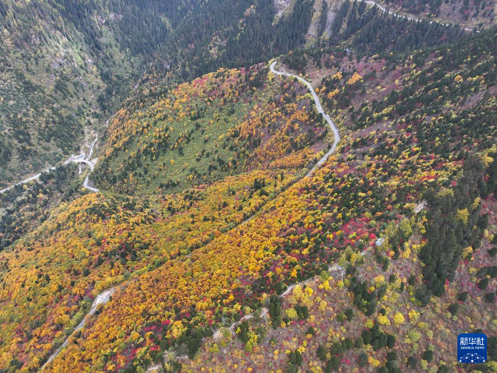 这是10月28日在林芝市巴宜区拍摄的色季拉山秋景(无人机照片)。新华社记者 卢丹阳 摄