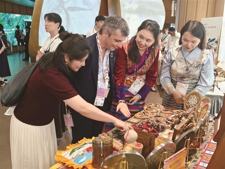2025年日本大阪世博会的展厅内,一幅《民族团结石榴图》掐丝珐琅画前始终人头攒动。金丝勾勒的石榴果实饱满,藏式吉祥纹样与汉族云纹交织,珐琅釉料在灯光下折射出绚丽光彩。这幅出自林芝市职业技术学校师生之手的作品,不仅让无数的异国观众驻足赞叹,更成为西藏文化与世界对话的“无声使者”。从北京的职业教育非遗成果展,到马来西亚马六甲的海丝文创联展,再到大阪世博会的国际舞台,这所位于雪域江南的职业院校,正以非遗传承为笔、职业教育为纸,书写着西藏文化“破圈”出海的动人篇章。