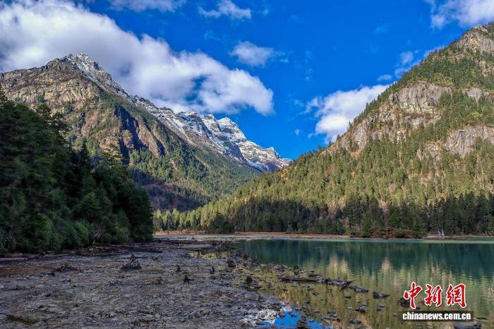 图为11月9日,西藏自治区林芝市工布江达县错高乡罗池村周边的原始森林和雪山。江飞波 摄