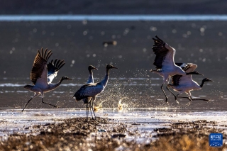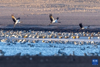 这是11月23日在西藏拉萨市林周县拍摄的越冬候鸟。新华社记者 李键 摄