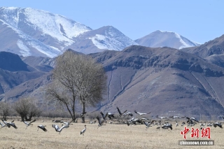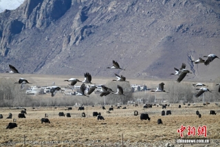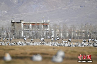11月26日,位于西藏自治区拉萨市林周县的黑颈鹤自然保护区内,大量越冬的黑颈鹤在卡孜水库、农田、湿地里觅食、嬉戏。林周县位于拉萨河上游及澎波河流域,是黑颈鹤的主要越冬地之一。
