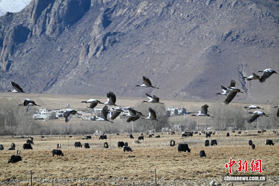 越冬黑颈鹤“做客”西藏林周 绘就生态乐园 中新社记者 贡嘎来松 摄