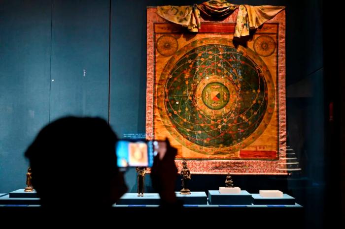 2020年11月6日,游客在广州广东省博物馆参观“唐蕃古道——七省区精品文物联展”。中新社记者 陈骥旻 摄