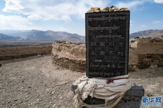 这是在江孜宗山古堡拍摄的跳崖英雄纪念碑。新华社记者 孙瑞博 摄