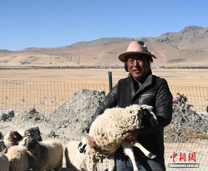 “现在羊都暂时养在山脚下的圈里,过段时间新羊圈也就修好了。”扎西多布杰对绪建兵说。临时搭建的羊圈里,67只羊正低头悠闲地吃草。