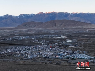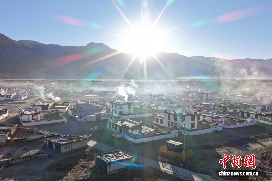 图为重建后的森嘎村清晨。(无人机照片)中新社记者 贡嘎来松 摄
