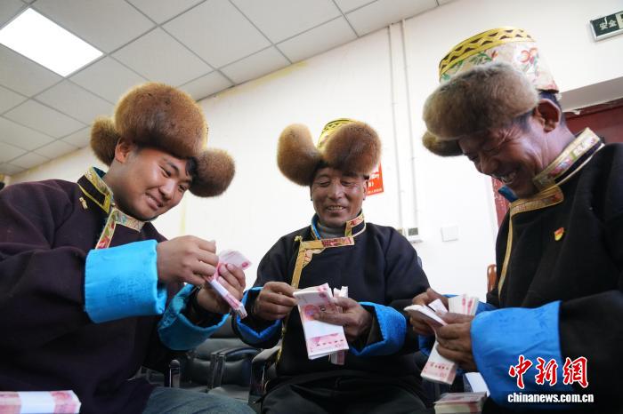 琼结县拉玉乡强吉村党总支书记、村委会主任赤列旺久反复数着一叠又一叠的现金说:“今年分红75000元。相较于出远门打工挣钱,在家门口养蜂更踏实,收益更好。”