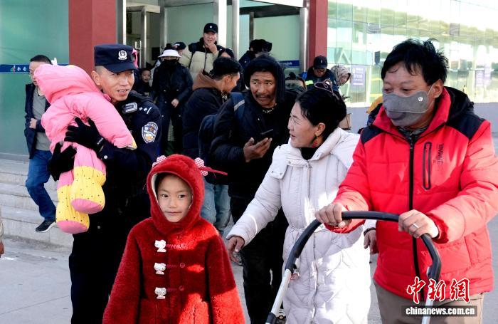 图为那曲站派出所民警帮助进站老百姓。李林摄
