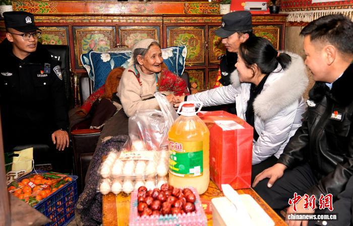 图为那曲站派出所民警在罗马镇村民卡珠家里慰问。李林摄