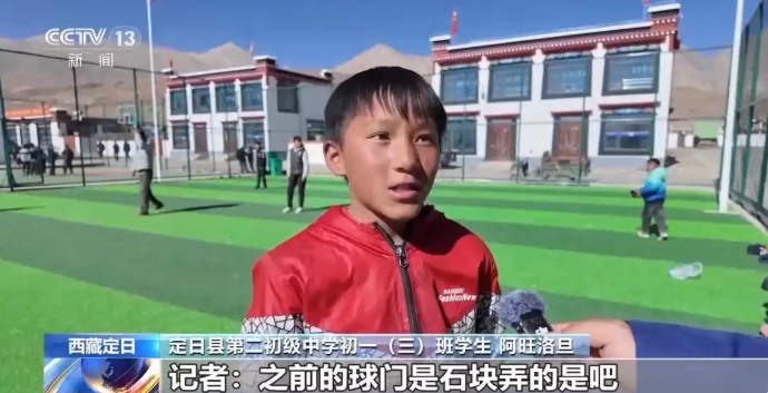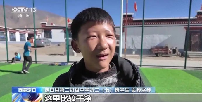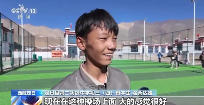 定日县第二初级中学初三(四)班学生 洛桑达娃:现在在这种操场,大的感觉很好。