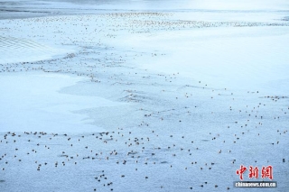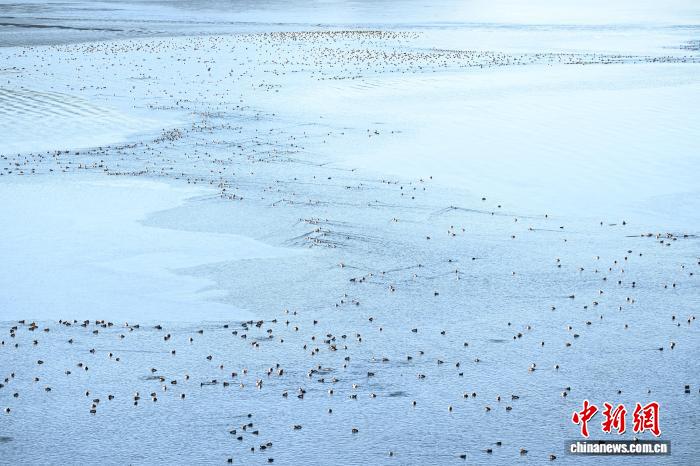 1月18日,成群候鸟在沉错水域越冬。中新社记者 贡嘎来松 摄