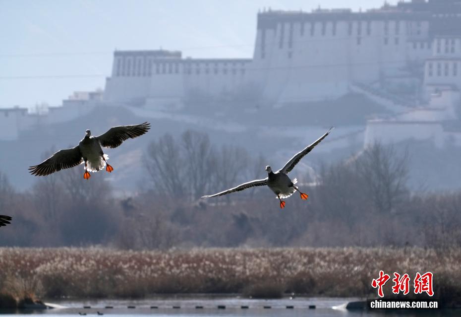 1月18日,栖息在西藏拉萨拉鲁湿地国家级自然保护区的候鸟。中新社记者 李林 摄
