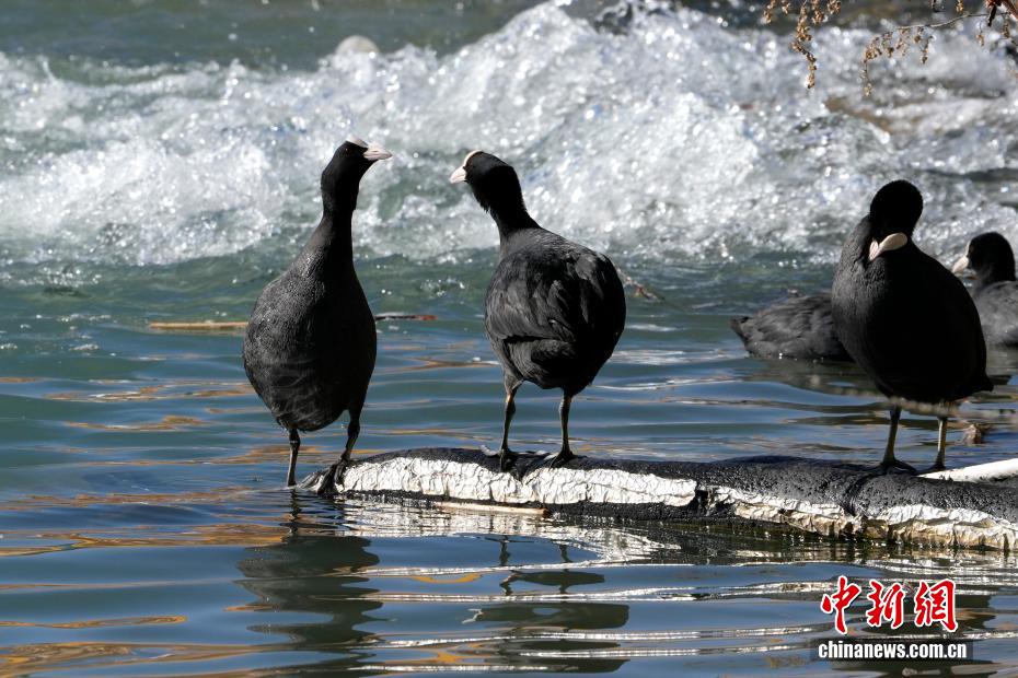 1月18日,栖息在西藏拉萨拉鲁湿地国家级自然保护区的骨顶鸡。中新社记者 李林 摄