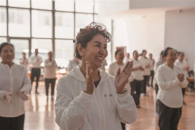 老人排练舞蹈。