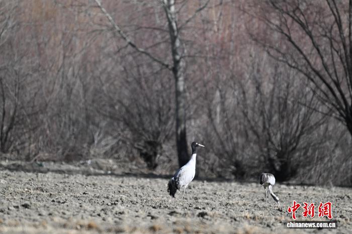 图为雅鲁藏布江干流谷地农田里的黑颈鹤。贡嘎来松 摄