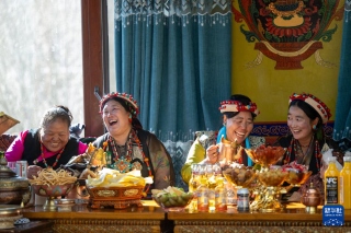 1月20日是西藏日喀则农家新年初二。日喀则市桑珠孜区聂日雄乡楚松村村民喝着青稞酒,吃着牛羊肉,载歌载舞喜过农家新年。