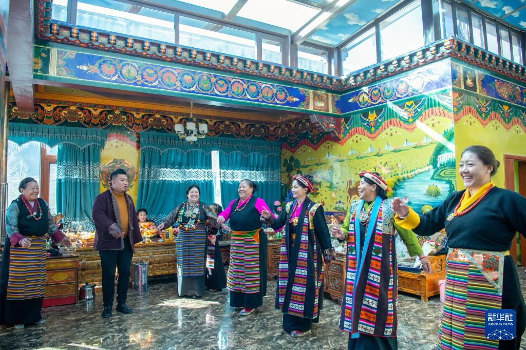 1月20日,日喀则市桑珠孜区聂日雄乡楚松村村民在欢度新年。新华社发(旦增努布 摄)