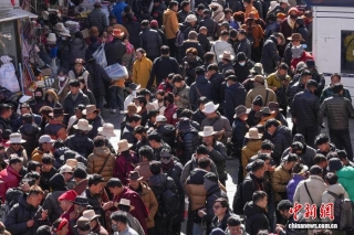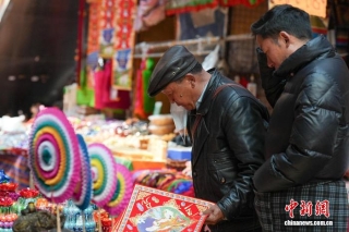 1月27日,藏历新年将至,拉萨街头年味渐浓。城区街巷灯笼高挂,市民忙着采购酥油花、香布、切玛盒、吉祥羊头、藏文春联等特色年货,各式新年好物琳琅满目,处处洋溢着喜庆祥和的节日氛围,人们以传统方式迎接新年到来。