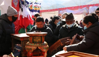 缝制五彩经幡树 迎接藏历新年