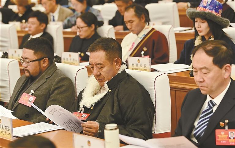 委员们认真聆听工作报告。记者 旦增兰泽 摄