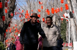 2月3日,西藏拉萨布达拉宫脚下的宗角禄康公园,红灯笼装点节日氛围。中新社记者 李林 摄