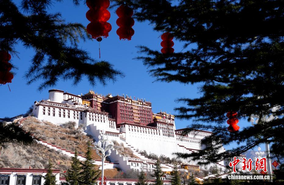 2月3日,西藏拉萨布达拉宫广场,红灯笼装点节日氛围。中新社记者 李林 摄