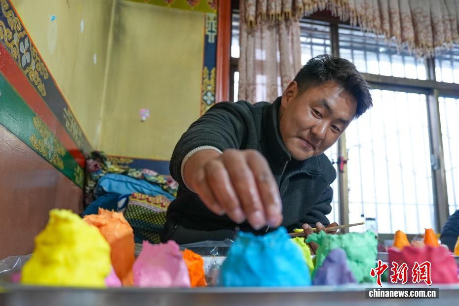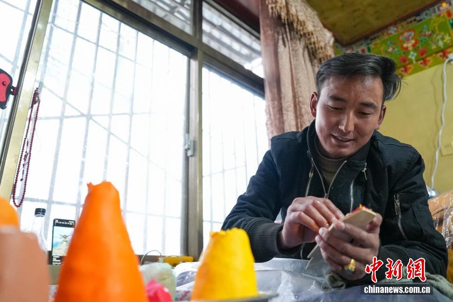 2月4日,随着藏历新年临近,拉萨街头年味渐浓,年货市场上的“孜扎”迎来热销。酥油花藏语称“孜扎”,是藏历新年吉祥物切玛盒的重要组件,也是藏族民众家中必备的年货。酥油花以酥油为主要原料,由匠人纯手工捏制而成,造型涵盖佛像、人物、花卉树木、飞禽走兽等,常见图案包含吉祥八宝、和谐四瑞、长寿图等,承载着藏族民众对新年平安吉祥、万事顺遂的美好祈愿。