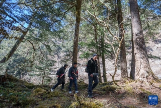 冬日时节,西藏山南市隆子县玉麦乡的群山覆盖着积雪。4名护边员晨光中行进在雪山间,50岁的普布罗布肩扛国旗,走在队伍最前面,索朗多吉、拉巴次仁、洛桑罗布紧跟其后。