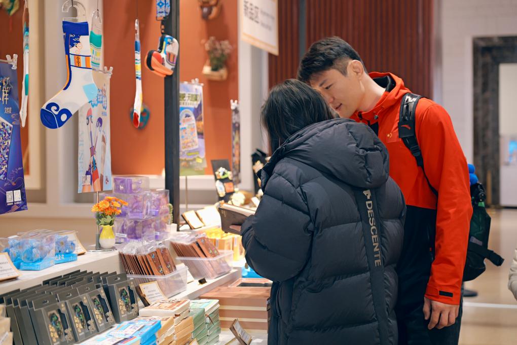 游客在西藏博物馆挑选文创产品。新华社记者周昱龙摄