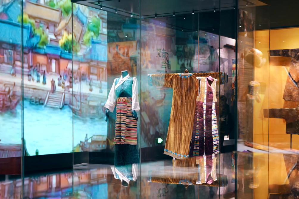 这是在西藏博物馆“丝绸文化展”中展出的传统服饰。新华社记者周昱龙摄