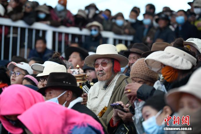 图为拉萨市民在观看文艺表演。中新社记者 贡嘎来松 摄