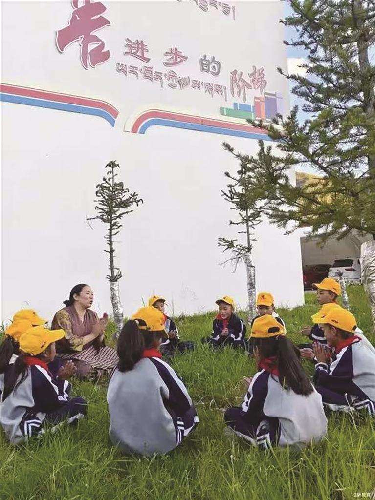 顿珠卓玛与学生课间一起休息。通讯员 次昂 摄