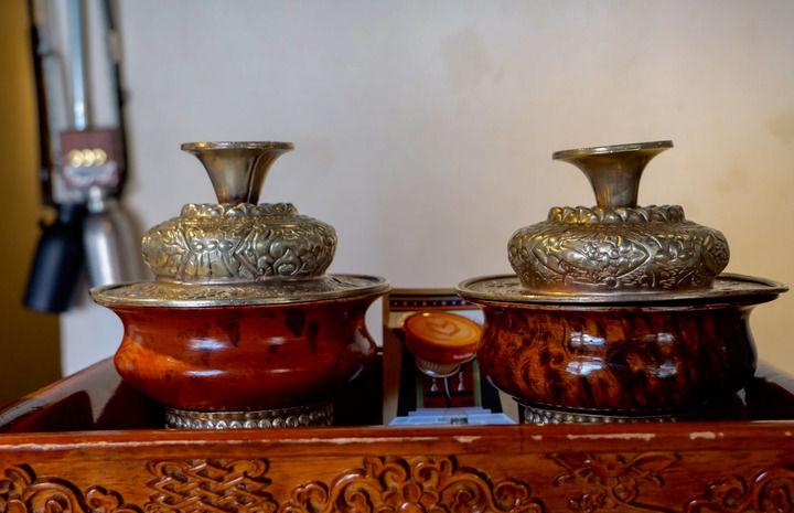 这是用来盛装“拉萨拿铁”的藏式木碗(2025年9月23日摄)。