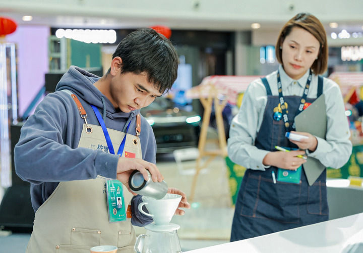 “柠渡无声咖啡店”的听障咖啡师扎西顿珠在参加2025年中国咖啡冲煮大赛城市赛(2025年10月12日摄)。