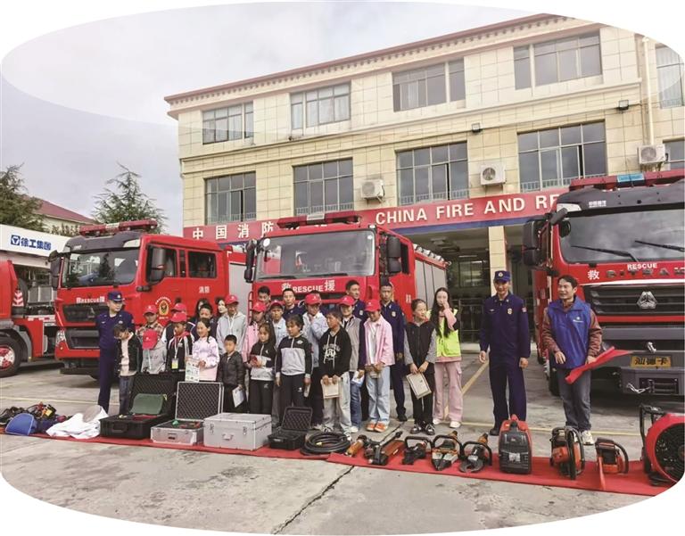 社区联合消防部门为孩子们开展消防知识小课堂。图由白玛岗社区提供