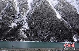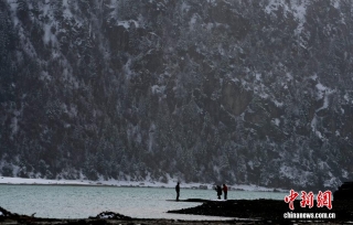 3月25日,游客拍摄西藏昌都然乌湖雪后景色。中新社记者 李林 摄