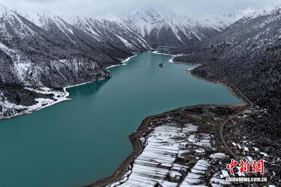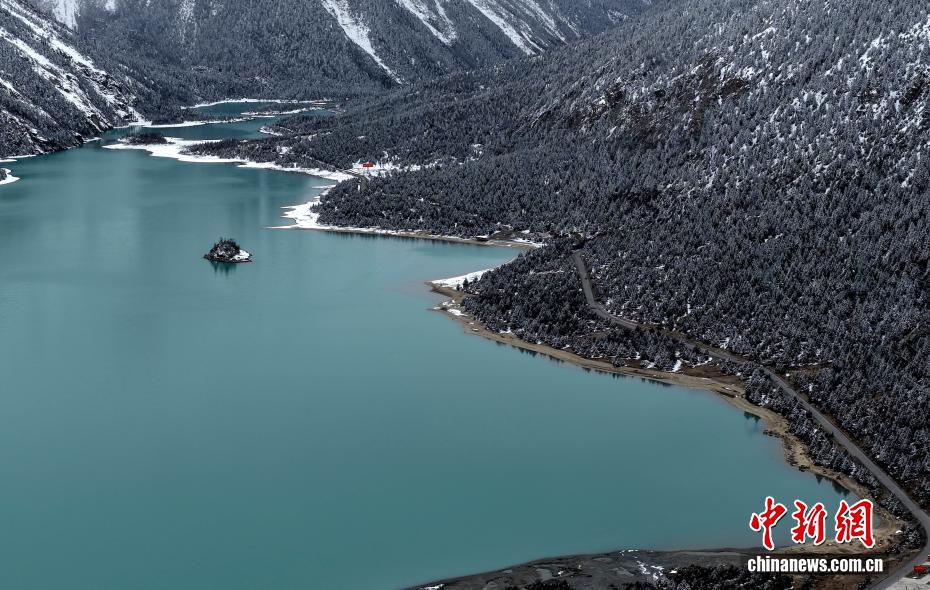 3月25日,西藏昌都然乌湖雪后景色。(无人机照片)中新社记者 李林 摄